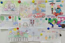 Мәктәпкәчә яшьтәге балалар төркемендә "Юлларда сак бул!" дип аталган рәсемнәр күргәзмәсе ясалды.