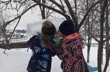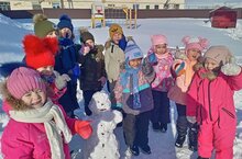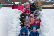 Мәктәпкәчә яшьтәге балалар төркемнәре саф һавада уйнап, сәламәтлекләрен ныгыттылар, кар бабай әвәләделәр.
