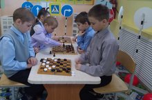 4 класс укучылары тәнәфесләрдә вакытларын файдалы уздыралар, 1 класс укучыларын шашка уйнау серләренә өйрәтәләр.