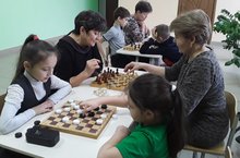 Укучылар тәнәфесләрдә укытучы апалары белән берлектә шашка уеннарында көч сынашалар.