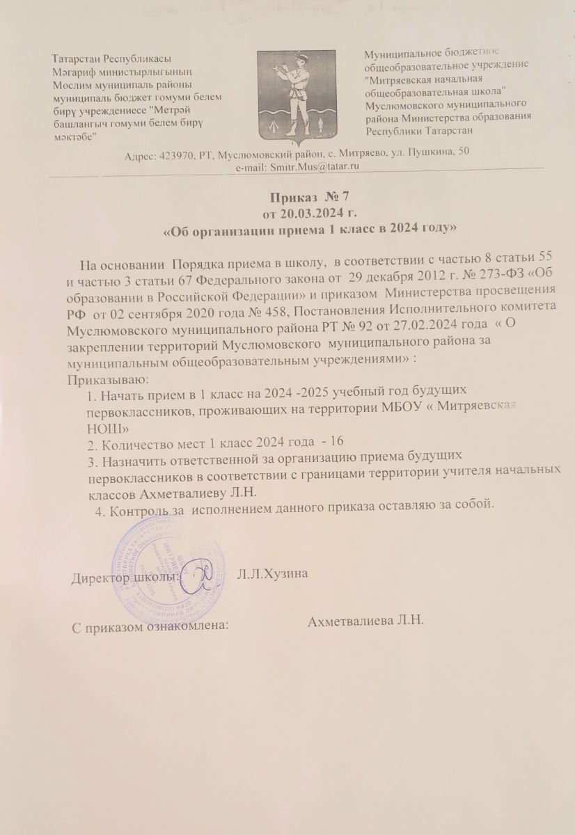 | Адрес: | 423970, Республика Татарстан, Муслюмовский район, с. Митряево, ул. Пушкина, д. 50 |