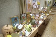 В актовом зале гимназии проходит ежегодная выставка "Осень золотая". На выставке представлены лучшие работы учеников. Красочные картины, поделки из бумаги, дерева и даже овощей. Авторы лучших работ будут награждены дипломами.