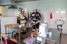 В Муслюмовской гимназии прошли учения по противопожарной безопасности. Условный очаг возгорания в школьной столовой был вовремя потушен прибывшей пожарной командой.
