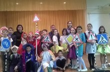 Сегодня ученики 4б класса (классный руководитель - Фахертдинова Л.А.) поставили красочное представление на тему Правил дорожного движения. В форме мини-спектакля дети рассказали зрителям-ученикам младших классов о правилах дорожного движения и как важно их соблюдать. Параллельно велась и видеосъемка выступления для Республиканского конкурса тематических видеороликов.