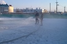 Учителя физкультуры проводят заливку школьного катка. К концу недели лед будет готов к обкатке.