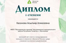 Ученики 2в класса МБОУ "Муслюмовская гимназия" участвовали на конкурсе "Экология России". Получили Дипломы и подарки.