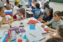День России в пришкольном лагере Муслюмовской гимназии начался с государственного гимна Российской Федерации