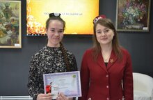 Мөслим музеенда 10 сыйныф укучысы Мингазова Камиләгнең кул эшлэре күргәзмәсе эшли. Камилә бүгенге чарада узенең эшләре белән килгән кунакларны таныштырды. Шулай ук Муса Жәлил шигырьләре уку бәйгесендә 1 урын алган очен бүләкләнде.