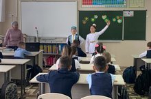 В рамках "Года педагога и наставника" и муниципального проекта "Уроки жизни", учащиеся 8-х классов пригласили на классный час учителя-пенсионера Талипову Л. А.