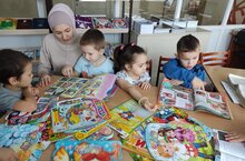 Күбәләк балалар бакчасының мәктәпкә әзерлек төркеме балалары гимназия китапханәсенә экскурсиягә килделәр. Китапханәче Гөлшат Марсовна балаларны энциклопедияләр белэн таныштырды. Беренче сыйныфка керуче балалар буларак, нинди китаплар белэн укыячаклар, шуларны күрсәтте. Балалар өчен чыгучы журналларга кузэтү ясады.