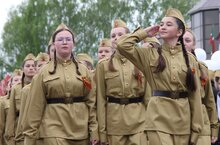 Сотрудники, юнармейцы и учащиеся гимназии присоединились к торжественному параду и с гордостью прошествовали маршрут почета.