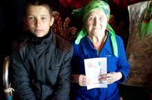 Бәйрәм уңаеннан укучылар тыл ветераннарын бәйрәм белән котладылар. Тамьян авылында яшәүче Мөкаттәрә әбигә бардылар.