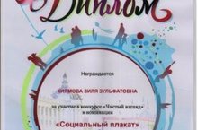 Ученица 9 класса Киямова Зиля награждена Дипломом Министерства экологии и природных ресурсов Республики Татарстан за активное участие в конкурсе «Чистый взгляд» в номинации «Социальный плакат», ноябрь 2014 год, министр А. Г. Сидоров. Руководитель ученика учитель физики и математики Рафаэль Зиннурович Зарипов.