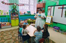 Мәктәпкәчә яшьтәге балалар төркемендә Югары Табын авылы фельдшеры белән әңгәмә.