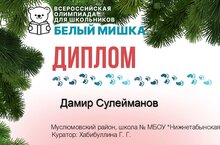 Обучающиеся начальных классов МБОУ "Нижнетабынская ООШ" принимают участие во Всероссийской развивающей олимпиаде «Белый мишка», которая проводится в целях исполнения федеральных проектов «Современная школа», «Успех каждого ребѐнка», национального проекта «Образование». В рамках проектов ведется работа по обеспечению равного доступа детей к актуальным и востребованным программам дополнительного образования, выявлению талантов каждого ребенка и ранней профориентации обучающихся. Для участников образовательным порталом https://belmishka.ru предлагаются олимпиады по направлениям: математика, русский язык, обучение грамоте, чтение, окружающий мир, английский язык.