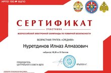 5-9 нчы сыйныф укучылары пожар куркынычсызлыгы буенча гомумрәсәй олимпиадасын үтеп, сертификатлар алдылар.