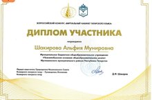 "Тукай укулары" муниципаль бәйгесендә III дәрәҗәдәге дипломга лаек булган 8 нче сыйныф укучысы Киямова Я. һәм аның укытучысы Хөсәенова Г. Ә. котлыйбыз. Иҗади уңышлар телибез!