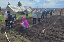 Мәктәбебездә язгы бакча эшләре дәвам итә. Суган утырту.