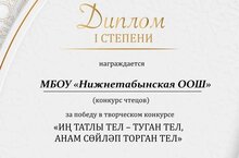Казан дәүләт медицина университеты оештырган «Иң татлы тел – туган тел, анаң сөйләп торган тел" иҗат бәйгесе нәтиҗәләре билгеле. Түбән Табын төп гомуми белем бирү мәктәбе I дәрәҗәдәге дипломга лаек булды.