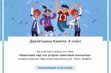 "Цифрлы дәрес"нең чираттагы чыгарылышы квантлы физикага багышланган иде. Дәрес дәвамында укучылар квантлы физика белән гади физиканың аермалары, квантлы компьютер турында мәгълүмат алдылар һәм киләчәктә барлыкка киләчәк һөнәрләр турында белделәр. Дәрес ахырында сертификатлар алдылар.
