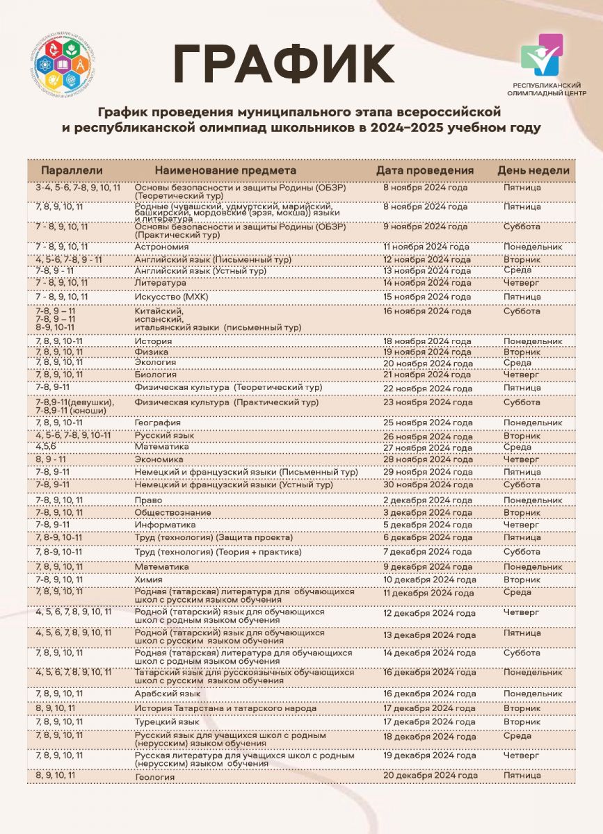 График проведения муниципального этапа ВСОШ