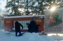 Ученики старшего звена вышли на субботник по уборкt территории обелиска села. 18.01.2017
