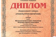 Учитель истории Митюшкина Е.А. и учитель начальных классов Петрова Л.А. стали обладателями диплома II степени в Общероссийском конкурсе "Этнокультурное воспитание", организованном информационно-методическим центром "Алые Паруса". 19.12.2016