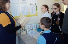 В рамках реализации урочной деятельности в соответствии с планом школы ученики познакомились с выставкой книг А. Гайдара. Библиотекарь школы Митюшкина Е. А. Прочитала ребятам отрывки из произведения "Тимур его команда" 24.01.2024