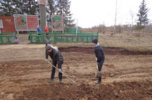 Ученики старшего звена вышли на субботник по уборки территории обелиска села. 21.04.2015