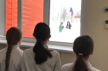 В рамках патриотического воспитания еженедельный спуск флагов и исполнение гимнов РФ и РТ по Стандарту церемонии поднятия (спуска) Минпросвещения России. 18.03.2023