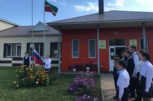 В рамках патриотического воспитания еженедельное поднятие флагов и исполнение гимнов РФ и РТ по Стандарту церемонии поднятия (спуска) Минпросвещения России. 16.09.2024