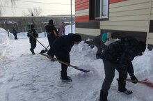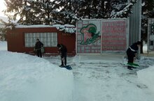 Трудовое воспитание. Уборка снега на территории школы. 07.02.2022