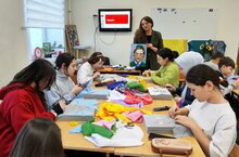 Сегодня преподаватель отделения изобразительного искусства Гульназ Талипова провела открытый урок по композиции для обучающихся 3 класса на тему "Панно в технике кинусайга по мотивам произведений Габдуллы Тукая". Целью урока было познакомить обучающихся с историей возникновения кинусайги и освоить приемы работы в этой технике. При работе в этой технике развивается мелкая моторика рук, образное и пространственное мышление, зрительно-двигательная координация и творческие способности.