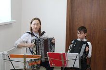 Мастер-класс на тему "Развитие чувства ритма на уроке баяна"/"Баян дәресендә ритм хисен үстерү" темасына мастер-класс 09.03.2022 4 марта преподаватель отделения народных инструментов Муслюмовской детской школы искусств Альфинур Гилметдинова провела мастер-класс на тему "Развитие чувства ритма на уроке баяна". Мастер-класс проведён с обучающимся 1-го класса Артёмом Хафизовым. В ходе работы преподаватель использовала игровые упражнения, способствующие развитию чувства ритма у детей. Альфинур Азгамовна показала практическую значимость использования данного комплекса упражнений и раскрыла содержание мастер-класса посредством выполнения комплекса игровых упражнений. Ученик справился со всеми поставленными задачами. 4 март көнне Мөслим балалар сәнгать мәктәбенең халык уен кораллары бүлеге укытучысы Әлфинур Гыйлметдинова "Баян дәресендә ритм хисен үстерү" темасына мастер-класс үткәрде. Мастер-класс 1 нче сыйныф укучысы Артем Хафизов белән үткәрелде. Эш барышында укытучы балаларда ритм хисен үстерүгә ярдәм итә торган уен күнегүләре кулланды. Әлфинур Әзһәм кызы әлеге күнегүләрне куллануның гамәли әһәмиятен күрсәтте һәм уен күнегүләре комплексын үтәү юлы белән мастер-класс эчтәлеген ачты. Укучы куелган барлык бурычларны да үтәде.