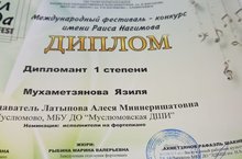 Международный конкурс-фестиваль им. Р.Нагимова “Урсал тауда”/ “Урсал тауда” халыкара фестивале 14.03.2022 На прошлой неделе в Альметьевске прошел международный конкурс-фестиваль им. Р.Нагимова “Урсал тауда”. В конкурсе приняли участие дети и подростки, играющие на фортепиано из разных городов и районов республики. В фестивале приняли участие обучающиеся Муслюмовской детской школы искусств. Среди детей до 9 лет Амин Гараев стал лауреатом 3 степени, Зухра Мухаметзянова-дипломантом 1 степени. Преподаватель - Алеся Латыпова. Среди детей старшего возраста наша ученица Язиля Киямова также добилась успеха и стала лауреатом 3 степени. Преподаватель - Розалия Хабибуллина. Детям были вручены памятные подарки. За подготовку победителей конкурса преподаватели получили дипломы за педагогическое мастерство. Узган атнада Әлмәт шәһәрендә “Урсал тауда” халыкара фестивале булып узды. Бәйгедә республиканың төрле шәһәр-районнарыннан фортепианода уйнаучы балалар һәм яшүсмерләр катнашты. Әлеге фестивальдә Мөслим сәнгать мәктәбе укучылары да катнашты. 9 яшькә кадәрге балалар арасында Әмин Гәрәев 3 дәрәҗә лауреат, Зөhрә Мөхәммәтҗанова 1 дәрәҗә дипломант исемен алдылар. Укытучылары - Алеся Латыпова. Олы яшьтәге балалар арасында укучыбыз Язилә Кыямова шулай ук уңышка ирешеп, 3 дәрәҗә лауреат исемен яулады. Укытучысы – Розалия Хәбибуллина. Балаларга истәлек бүләкләре тапшырылды. Конкурс җиңүчеләрен әзерләгән өчен укытучылары педагогик осталык өчен дипломга ия булдылар.