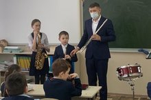 1 марта в рамках проекта "Мөслим егете, Мөслим кызы" преподаватель отделения духовых инструментов Муслюмовской ДШИ Шаяхметов Рунар Расихович с учениками 2в класса Муслюмовской гимназии провел классный час на тему: "Знакомство с духовыми инструментами". С инструментом курай познакомил обучающийся ДШИ Амин Гараев, Аделина Халилова сыграла на саксофоне, сам преподаватель познакомил как звучат инструменты труба и флейта. После продемонстрировал ритмические навыки на ударном инструменте барабан и рассказал о положительном влиянии на здоровье игры на народных инструментах.