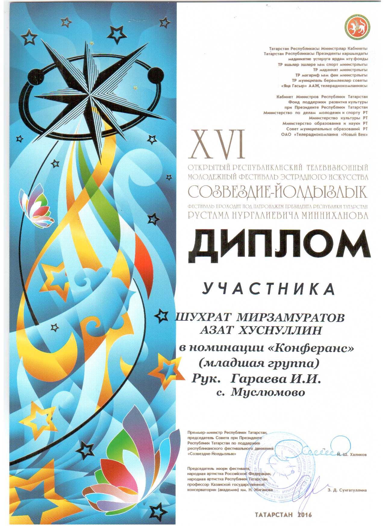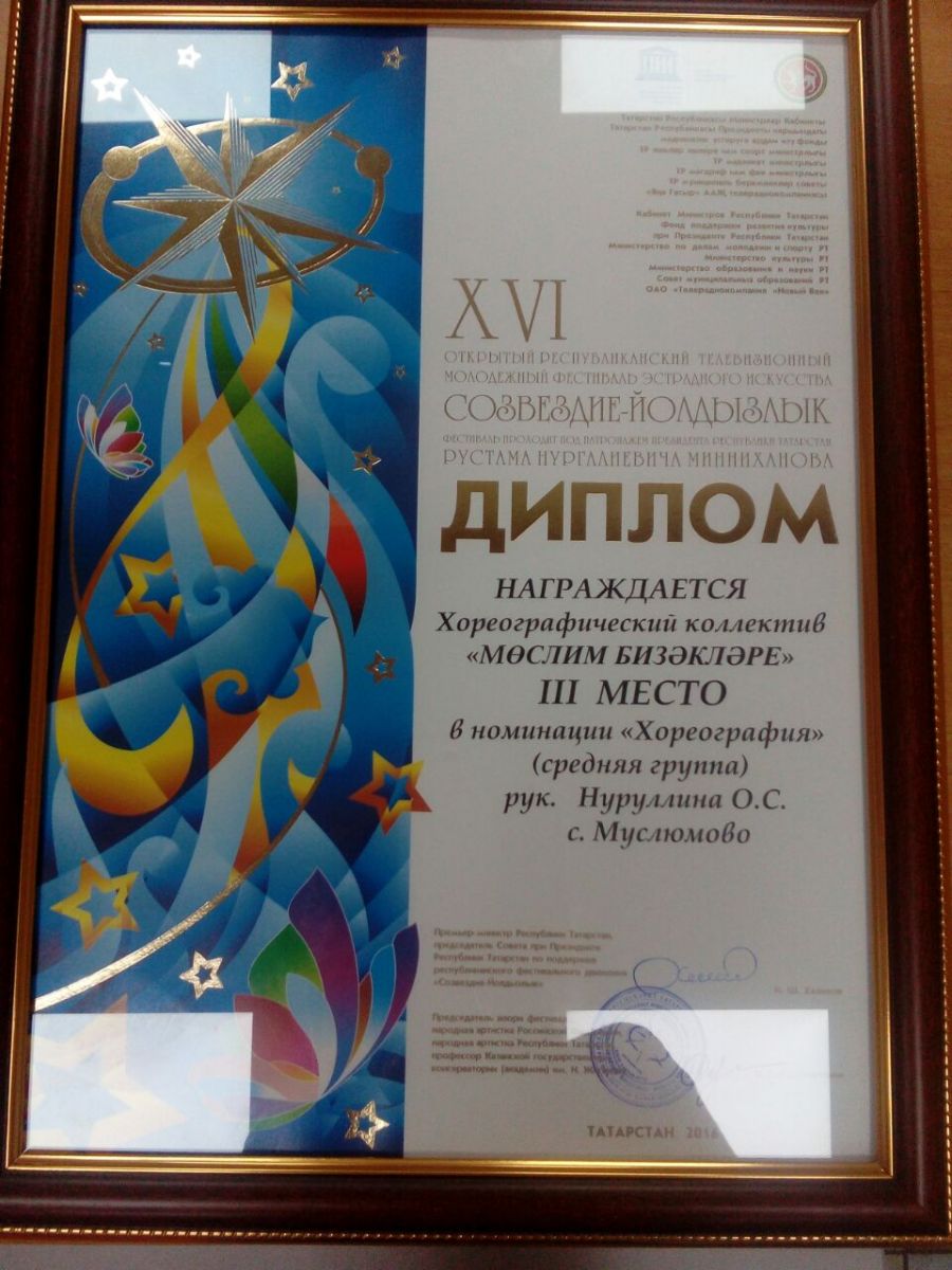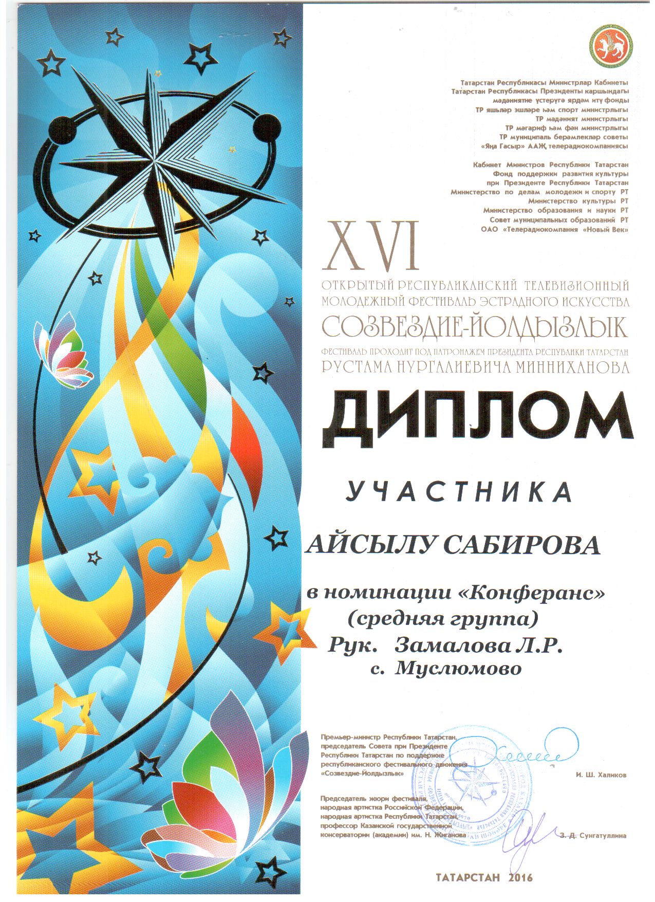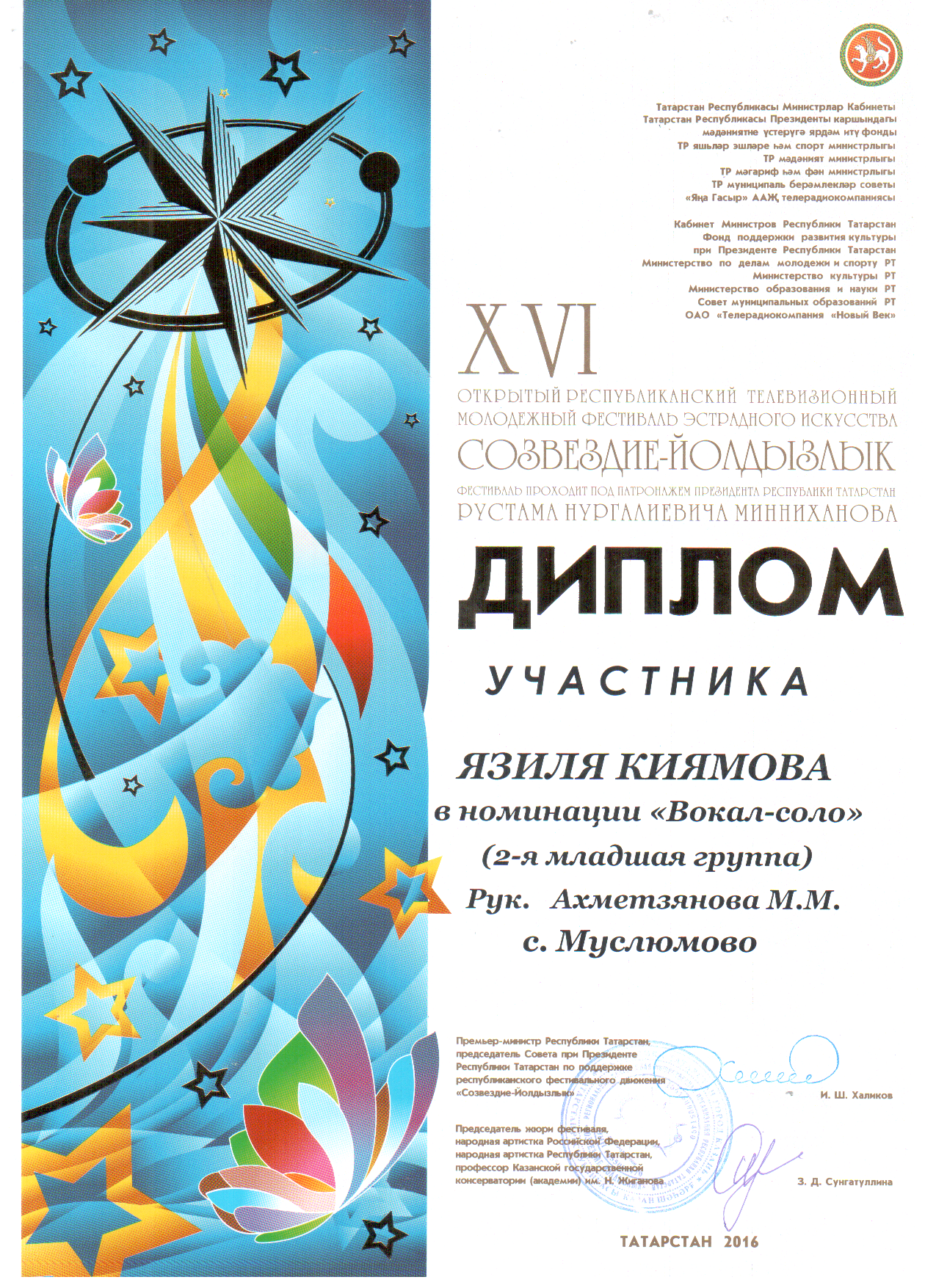 Киямова Язиля. Диплом лауреата I степени Республиканского конкурса "Юный музыкант" им. Ф.З. Яруллина