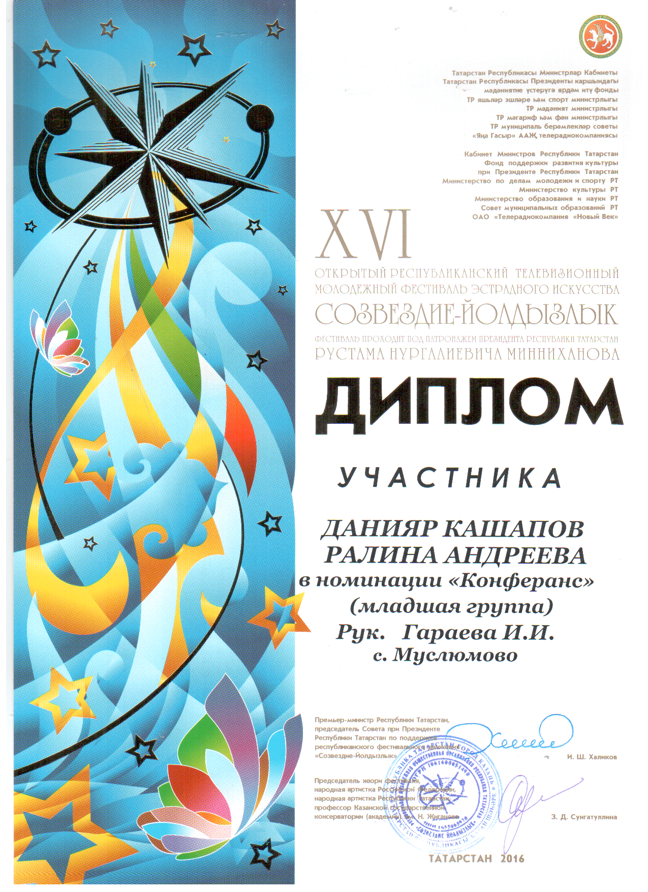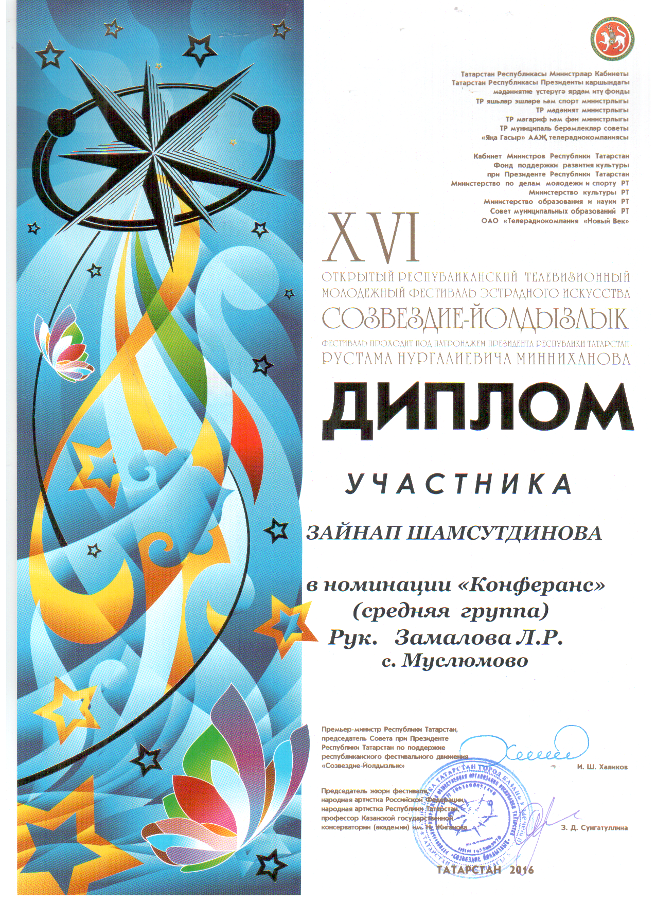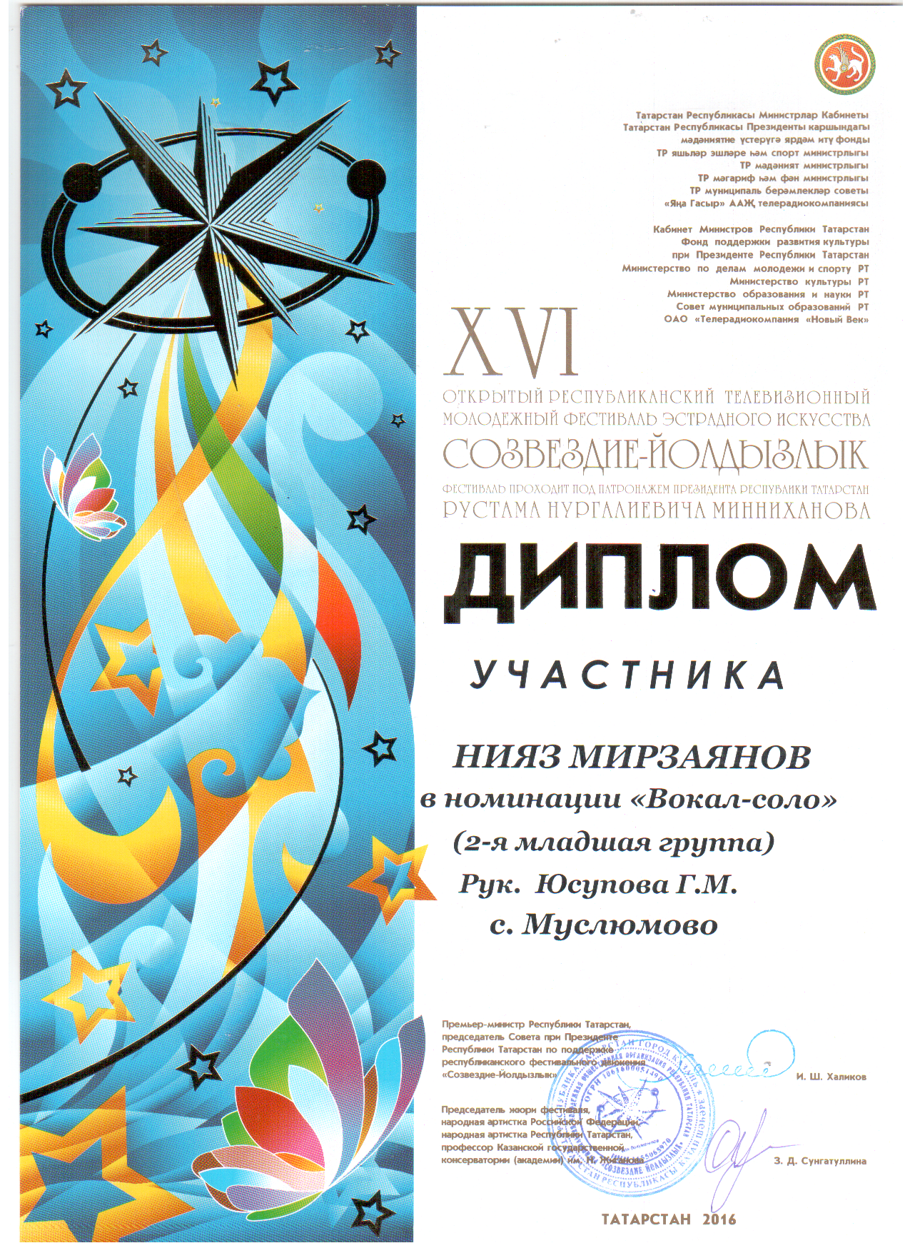 Киямова Язиля. Диплом лауреата I степени Республиканского конкурса "Юный музыкант" им. Ф.З. Яруллина