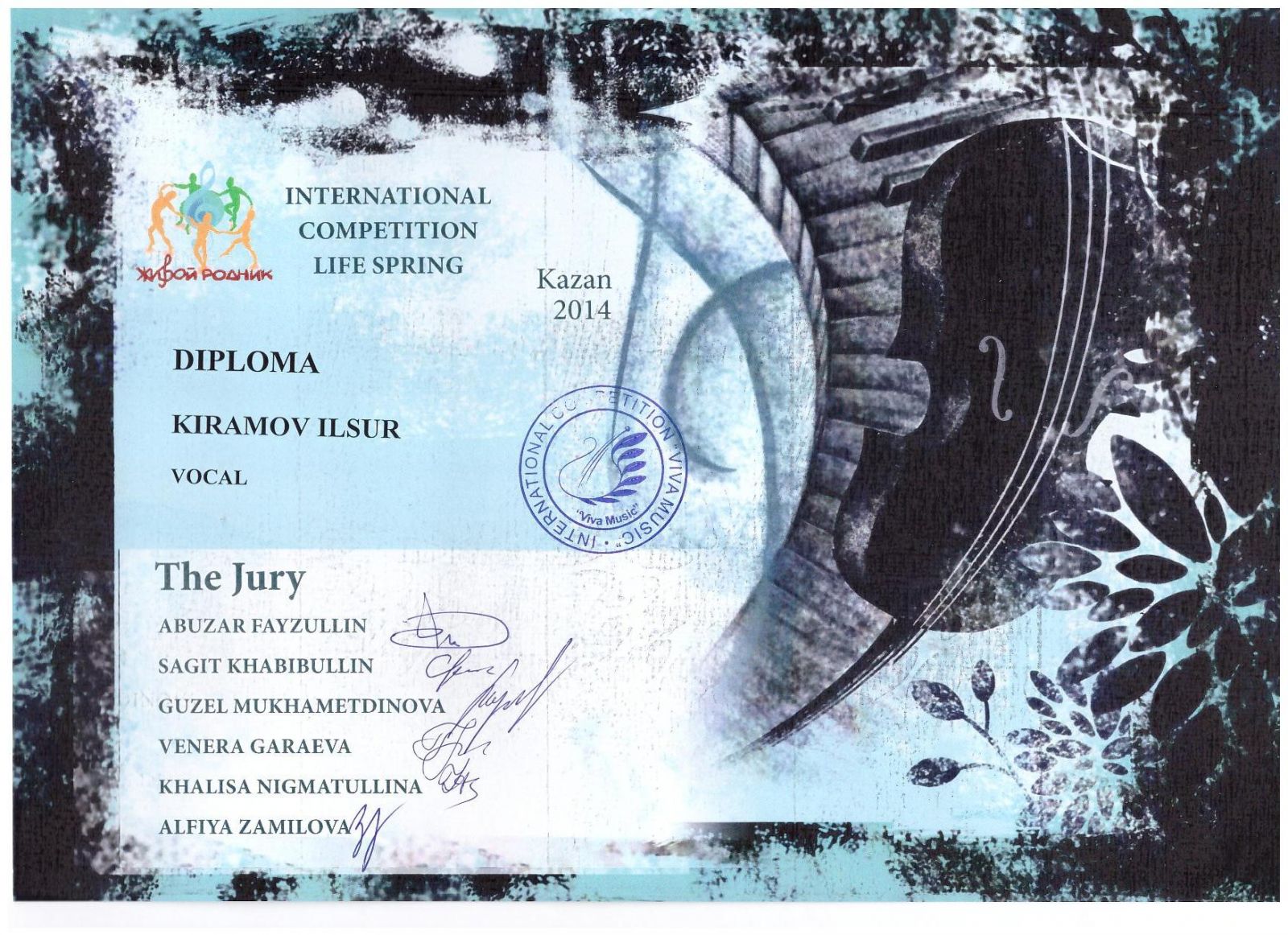 Кирамов Ильсур. Диплом V Международного конкурс-фестиваля народного творчества «Живой Родник».