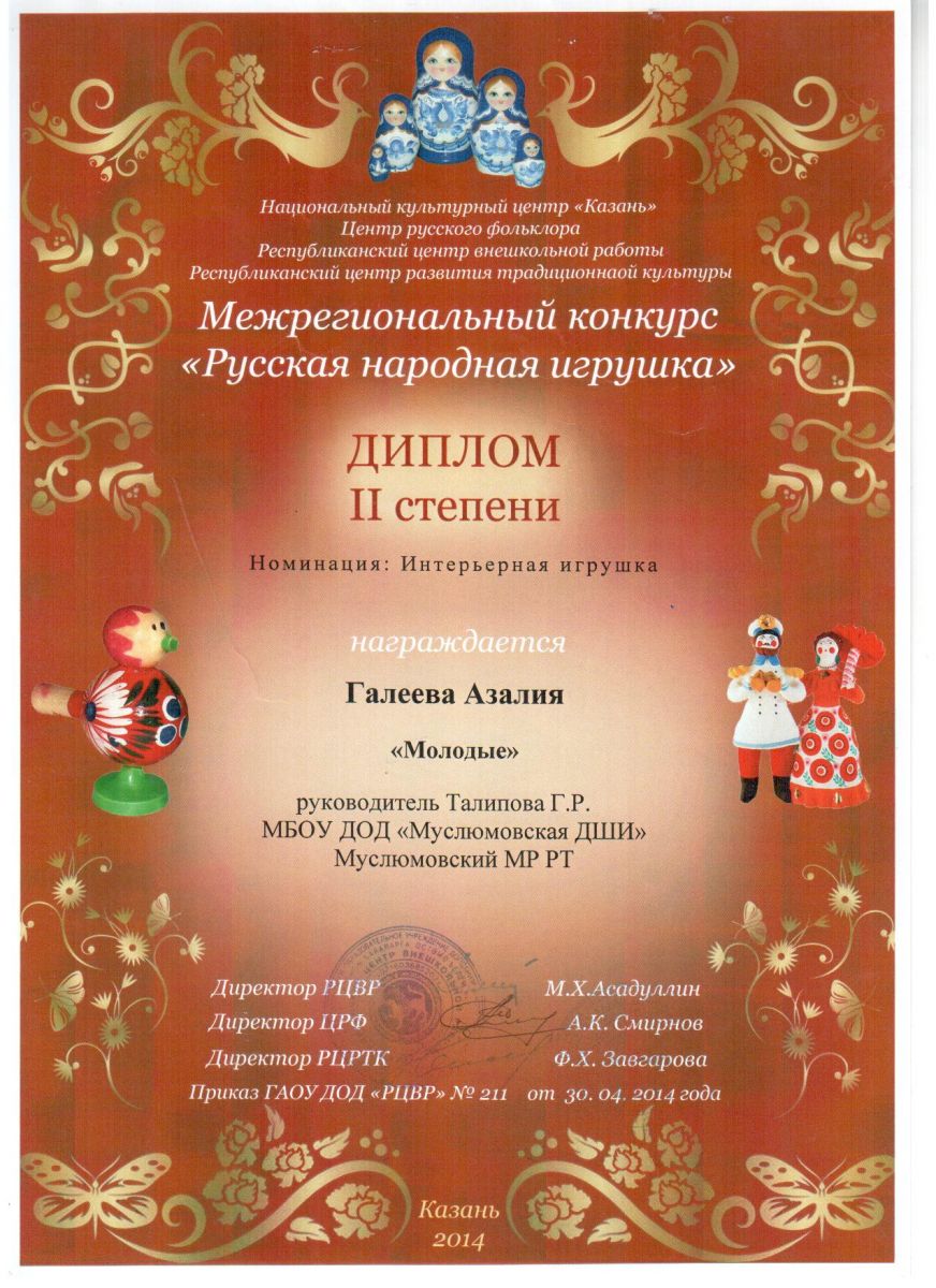 Галеева Азалия. Дипломант II степени межрегионального конкурса "Русская народная игрушка"