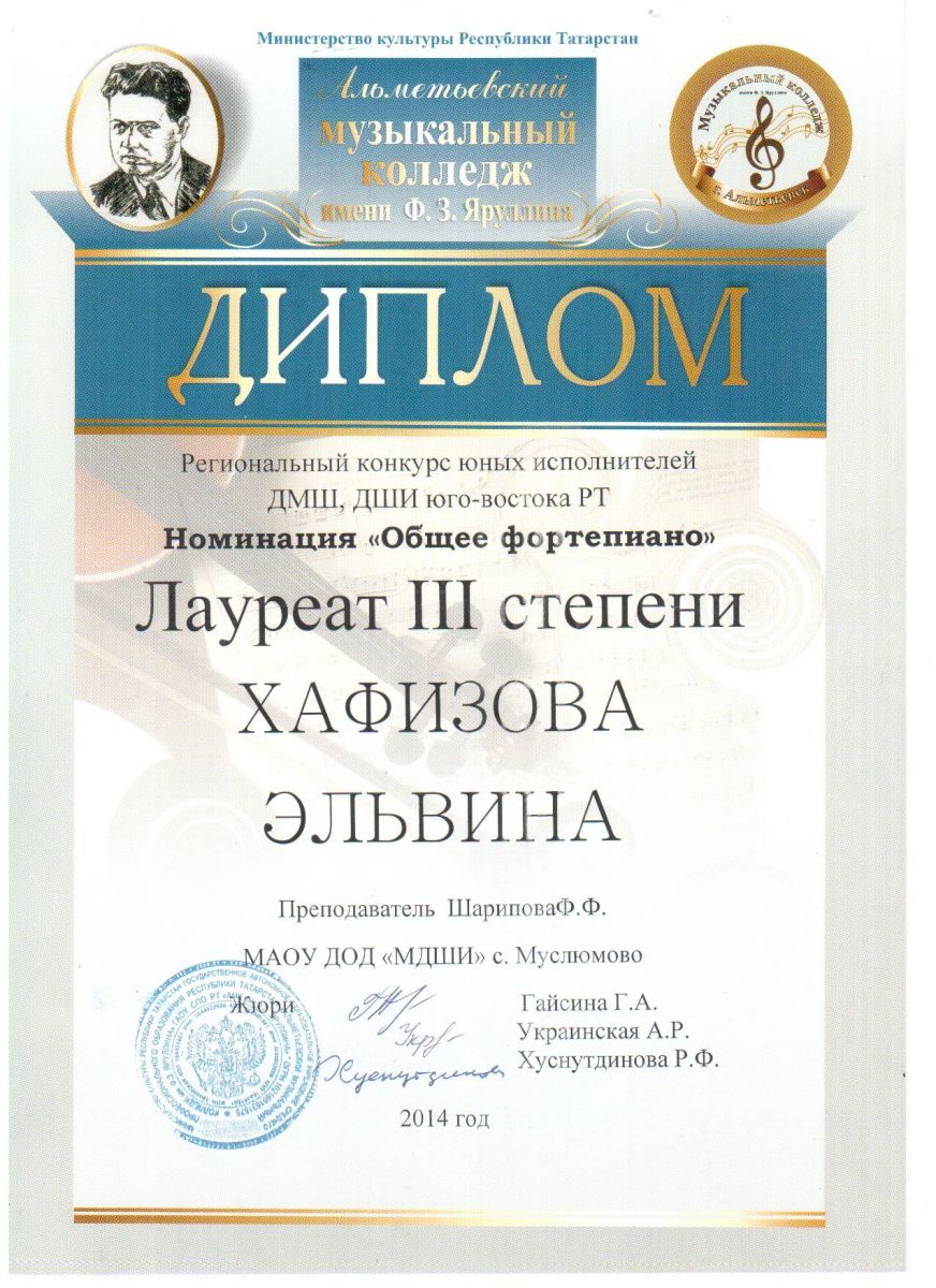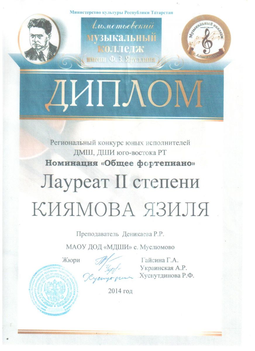 Киямова Язиля. Лауреат II степени регионального конкурса юных исполнителей ДМШ, ДШИ юго-востока РТ.