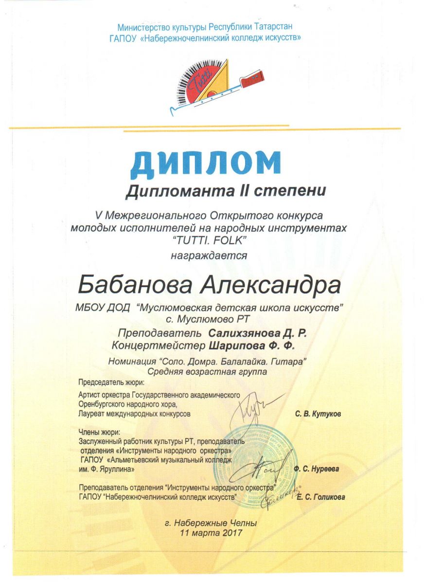 Бабанова Александра. Диплом XX регионального фестиваля детского творчества "Страна поющего соловья".