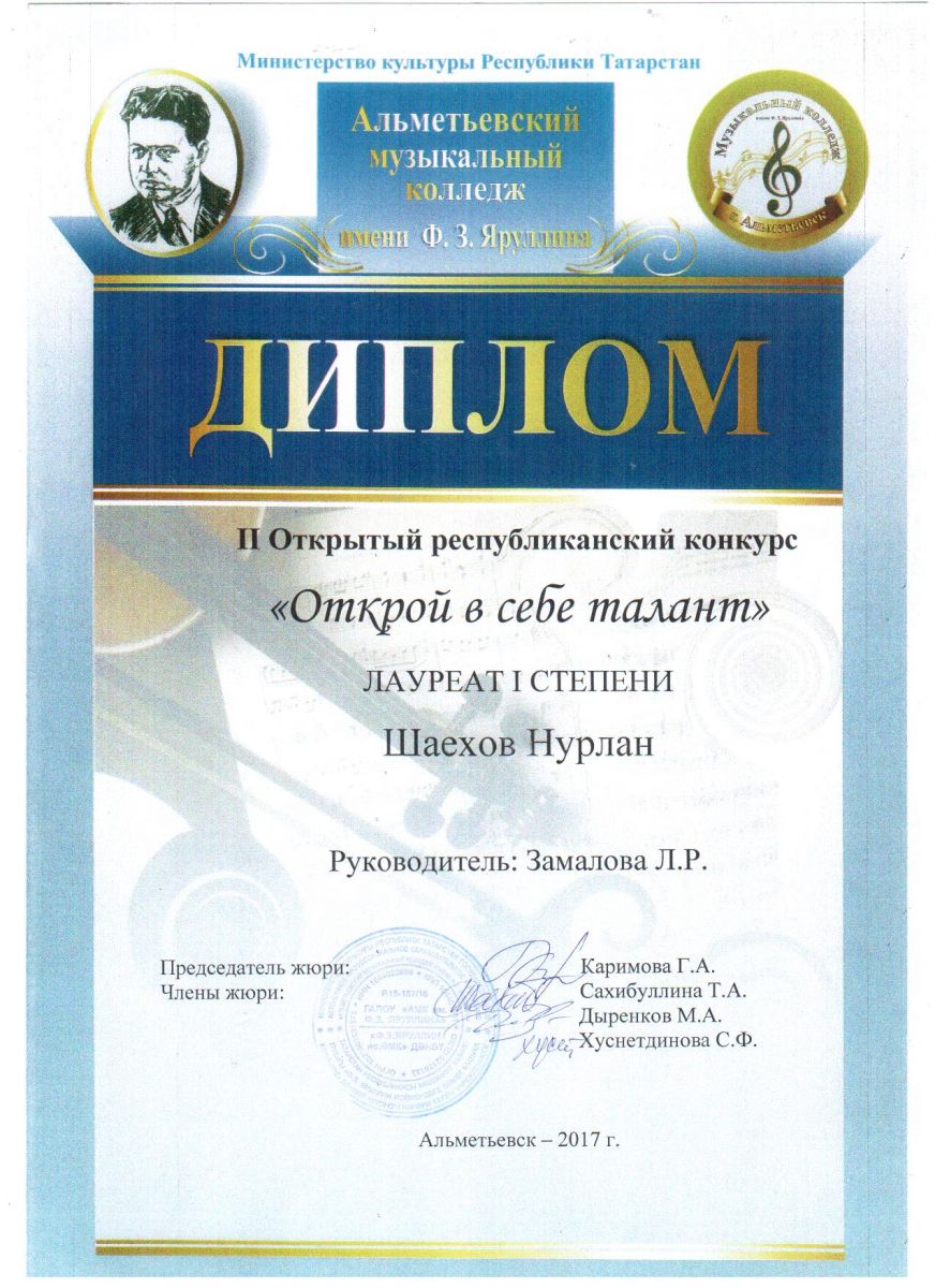 Нурлан Шаехов. Лауреат I степени II Открытого республиканского конкурса "Открой в себе талант"