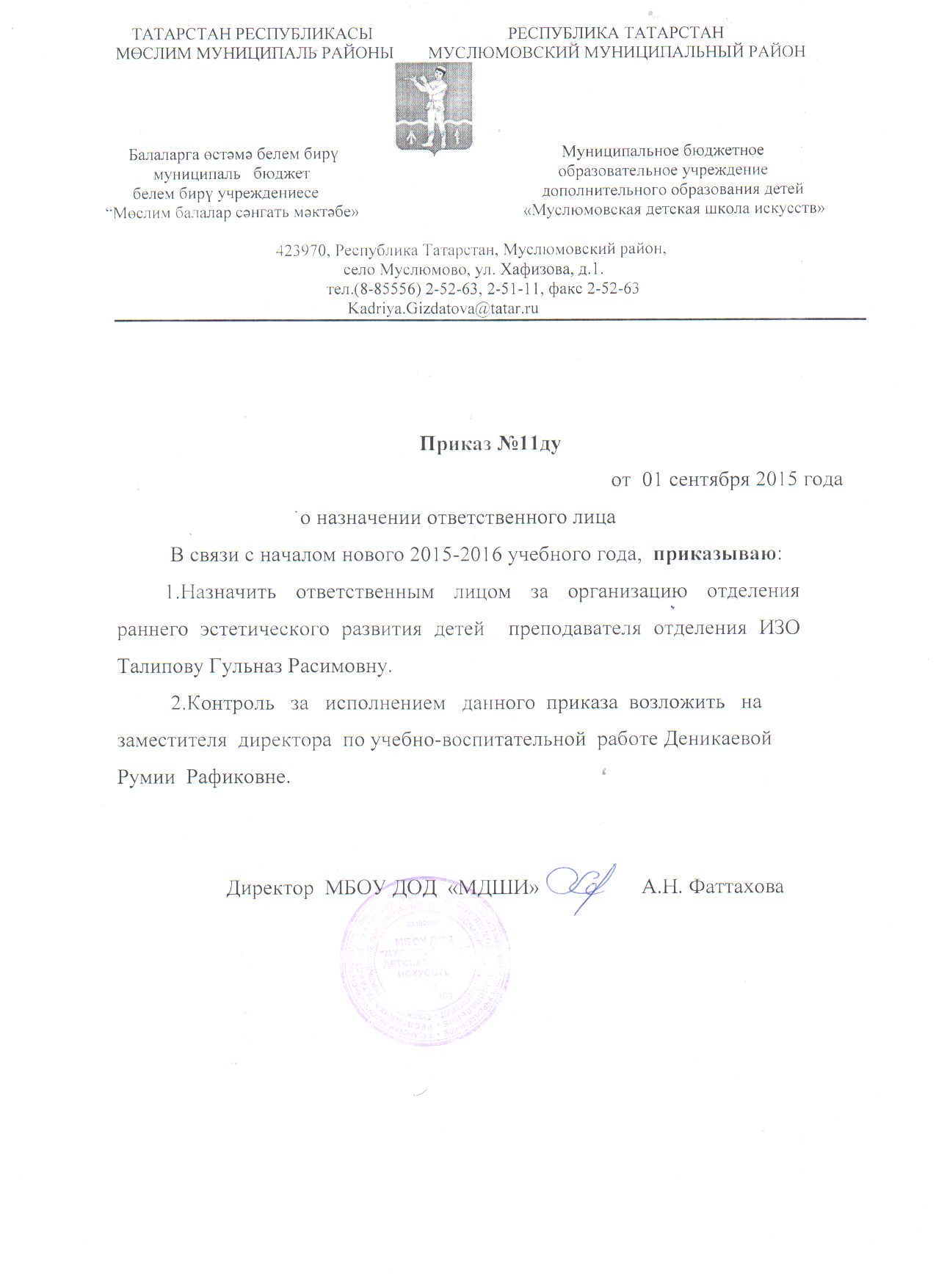 Приказ руководителя о назначении ответственного за организацию платных услуг