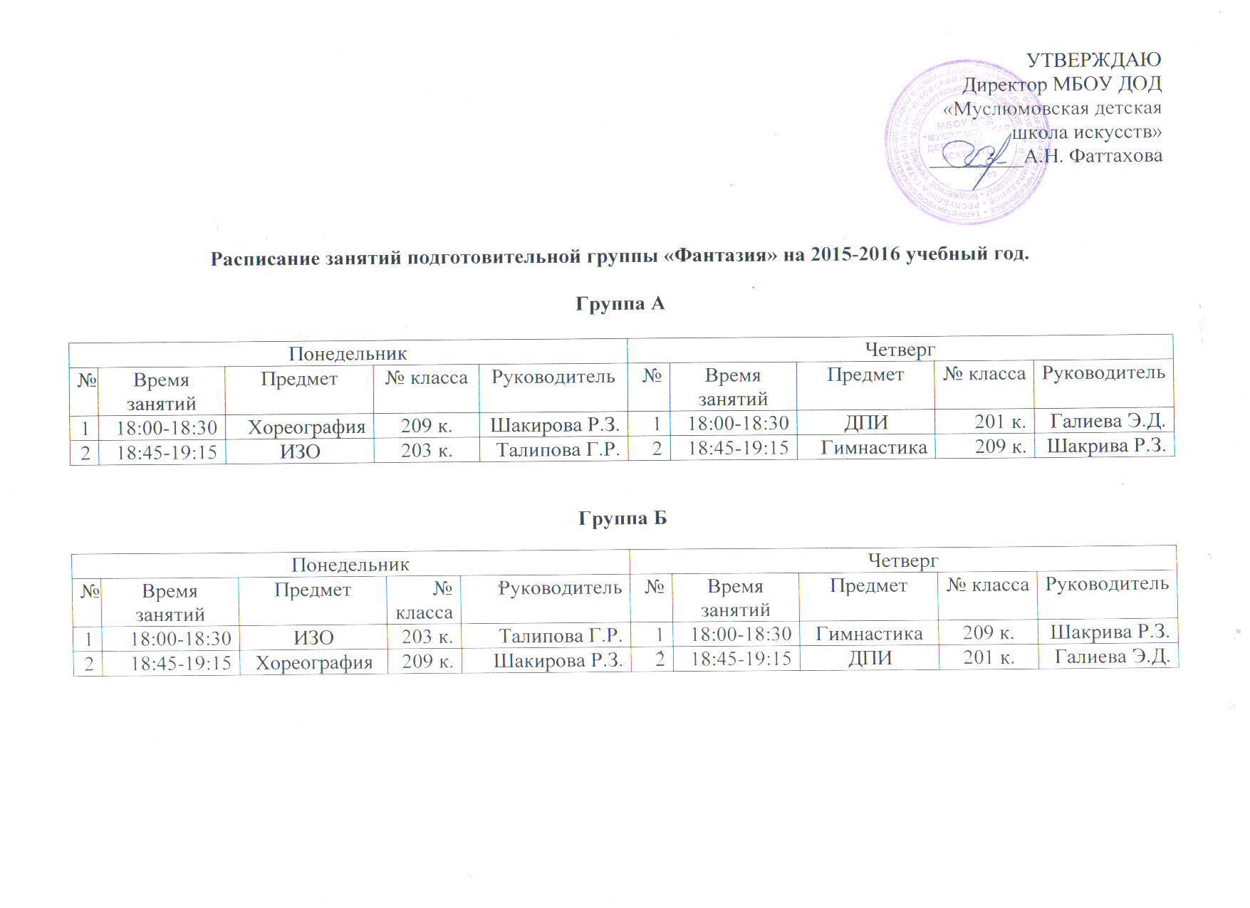 Расписание подготовительной группы "Фантазия".