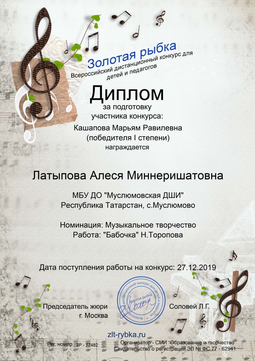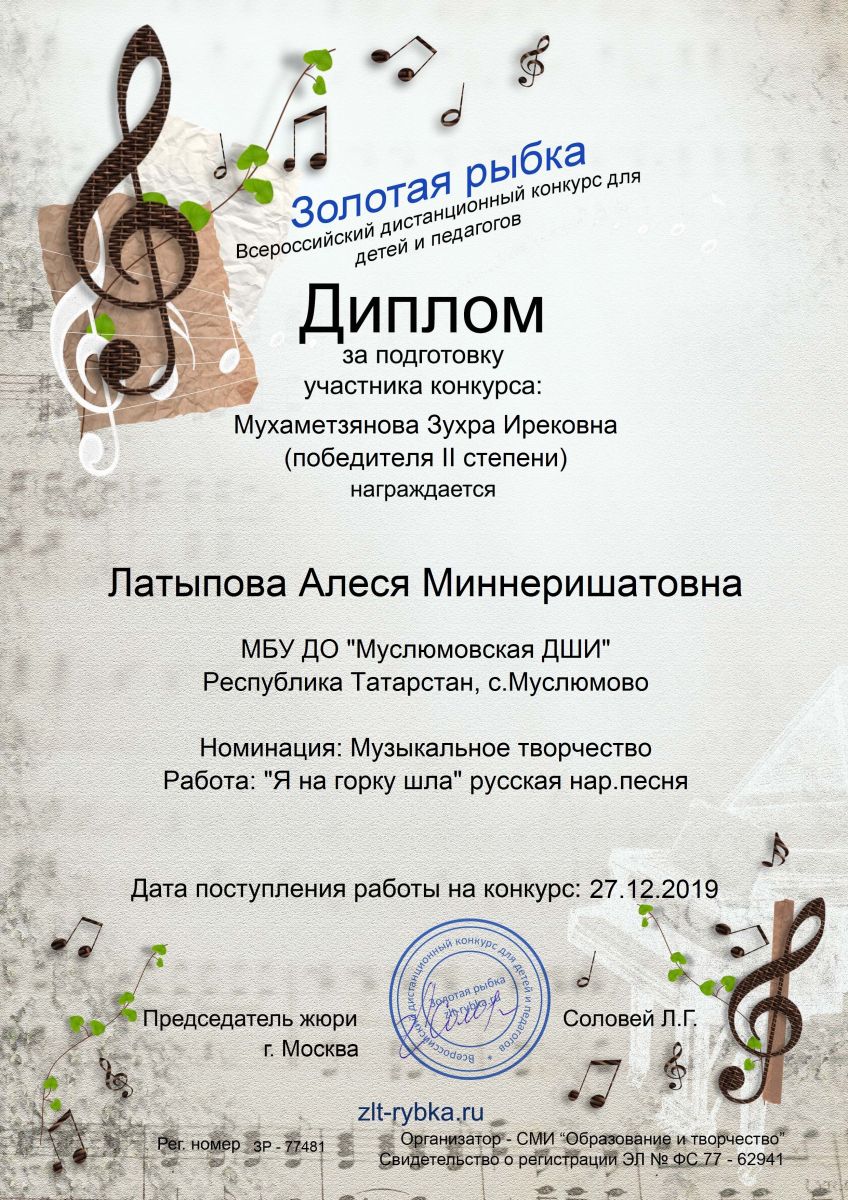 Латыпова Алеся Миннерашитовна.Диплом за подготовку участника конкурса. Всероссийский дистанционный конкурс для детей и педагогов.