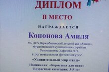 Воспитанницы Варяшбашевского детского сада "Аккош" Галимарданова А., Кононова А. приняли участие в Региональном фотоконкурсе "Удивительный мир птиц" в номинации "Кормушки для птиц".