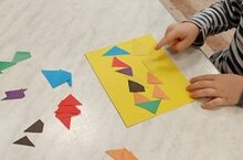В детском саду изобразительная деятельность включает такие виды занятий, как рисование, лепка, аппликация конструирование. Каждый из этих видов имеет свои возможности в отображении впечатлений ребенка об окружающем мире. Сегодня мы создали несложную композицию на листе из геометрических фигур. Здесь сочетаются умственная и физическая активность. Умение вырезывать, обращаться с ножницами, пользоваться кисточкой и клеем требуется известной затраты физических сил, трудовых навыков. Формированию трудолюбия способствует участие детей в подготовке к занятиям и уборке после них.