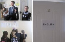 Вчера в школе прошел «День английского языка». На всех кабинетах были написаны названия предметов на английском языке. В столовой висели разговорные клише для общения на английском языке во время обеда. С самого утра учащиеся 5-9 кл. приняли участие в игре-эстафете по английскому языку. 3 команды «English Postmen», «American Postmen», «Australian Postmen» выполняли игровые задания. У каждой команды была своя