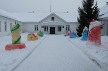 У главного входа в школу заняли свои места Дед Мороз и Снегурочка другие интересные и разукрашенные снежные фигуры выполненные учащимися и учителями. Фотографии фигур здесь.